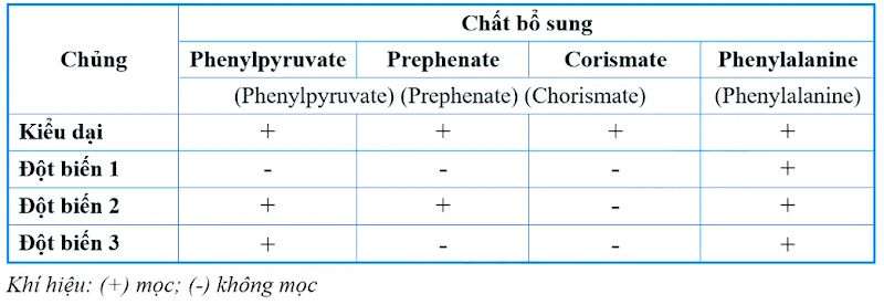 Câu 3: Nhằm xác định các gene tham gia vào con đường sinh tổng hợp Phenylalanine ở nấm đơn bội Neurospora, người ta đã phân lập được ba chủng đột biến gene cần có Phenylalanine để sinh trưởng. Các chủng đột biến này thể hiện khả năng mọc khác nhau trong các môi trường nuôi cấy có bổ sung các chất nằm trong chuỗi sinh tổng hợp Phenylalanine. Biết rằng, các gene bị đột biến nằm trên các NST khác nhau. Các nhận định dưới đây Đúng hay Sai?
