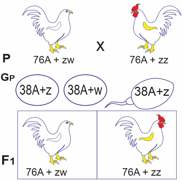 a) Gà mái có 76 NST thường và 2 NST giới tính khác nhau.