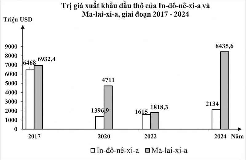 a) Năm 2024 so với năm 2017, trị giá xuất khẩu dầu thô của Ma-lai-xi-a tăng hơn 1,2 lần.