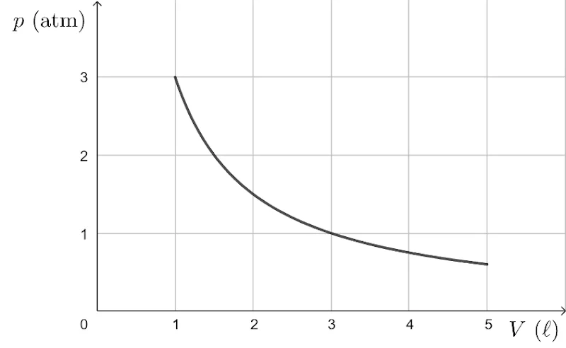 Câu 4. Một khối khí Helium lý tưởng xác định thực hiện một quá trình dãn nở và có đồ thị trạng thái được biểu diễn như hình bên dưới. Cho biết biểu thức của đồ thị là