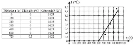 Câu 4: Một nhóm học sinh ở một trường THPT tại Nghệ An đã tiến hành thí nghiệm đo nhiệt nóng chảy riêng của nước đá. Bố trí thí nghiệm, số liệu đo được và vẽ được đồ thị như hình dưới đây.