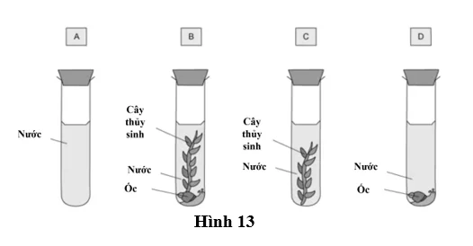 Câu 4: Một thí nghiệm được thiết lập ở Hình 13 với các ống nghiệm được đậy nút kín để không khí không thể ra vào. Tất cả ống nghiệm được đặt dưới ánh sáng mặt trời trong 6 giờ liên tụC.