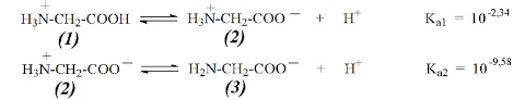 Câu 5. Cho các cân bằng giữa các dạng tồn tại của glycine trong dung dịch nước như sau: