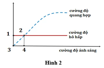Câu 5: Đồ thị dưới mô tả ảnh hưởng của cường độ ánh sáng đến cường độ hô hấp và cường độ quang hợp của một loài thực vật. Điểm nào trong các điểm 1,2,3,4 trên đồ thị biểu thị điểm bù ánh sáng của loài thực vật này?