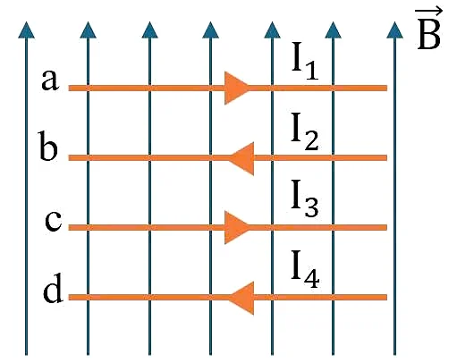 Các dòng điện chạy trong bốn đoạn dây dẫn này có cường độ Lực từ tác dụng lên đoạn dây dẫn nào lớn nhất?