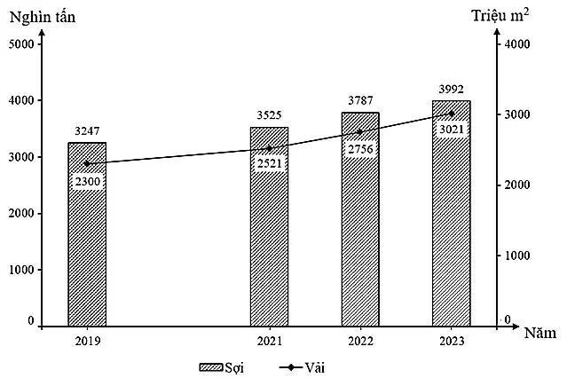 B. Giai đoạn 2019 - 2023 sản lượng vải tăng 745 triệu m2 do nhu cầu thị trường.