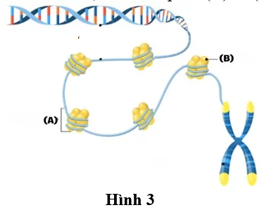 Câu 7. Hình 3 mô tả cấu trúc siêu hiển vi của NST, hai thành phần (A) và (B) lần lượt