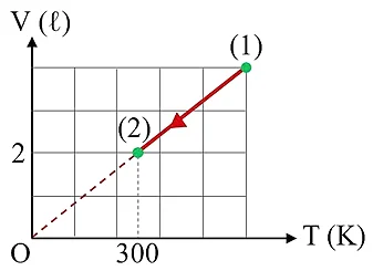 Sử dụng các thông tin sau cho câu 7 và câu 8: Một mol khí hydrogen (xem là khí lí tưởng) thực hiện quá trình biến đổi từ trạng thái (1) sang trạng thái (2), được biểu diễn trên đồ thị như hình vẽ.