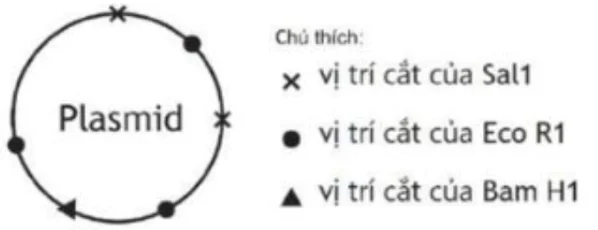 Câu 8: Hình bên mô tả một plasmid của vi khuẩn với vị trí cắt của ba loại enzyme cắt giới hạn khác nhau gồm Sal1, Eco R1 và Bam H1. Nếu plas...