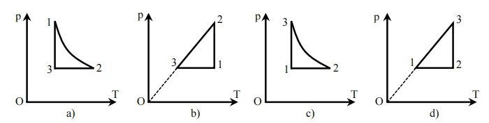 Đồ thị của sự biến đổi trạng thái trên trong hệ tọa độ (p,T) tương ứng với hình nào sau đây?
